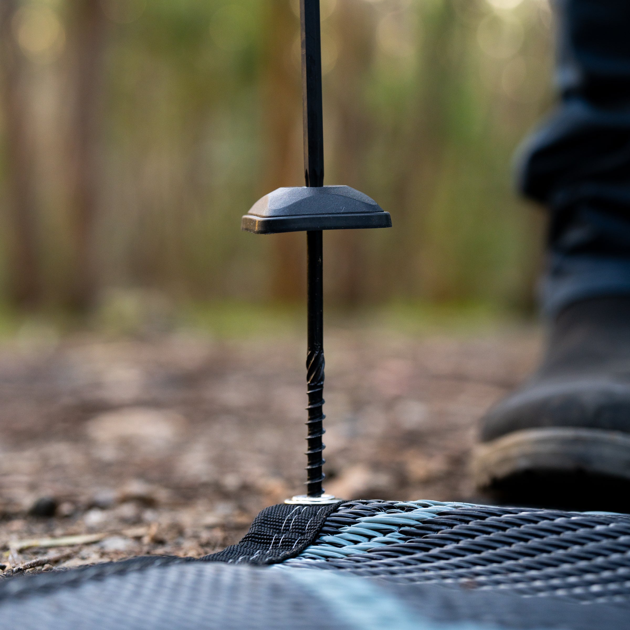 The STEADFAST Flat Terra is designed to secure your ground mats, minimising the possibility of stubbing your toe on it. Uses our Terra Driver Lite.