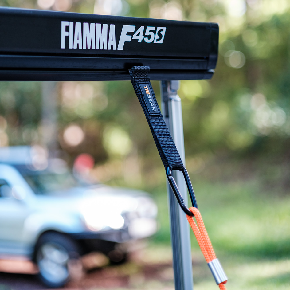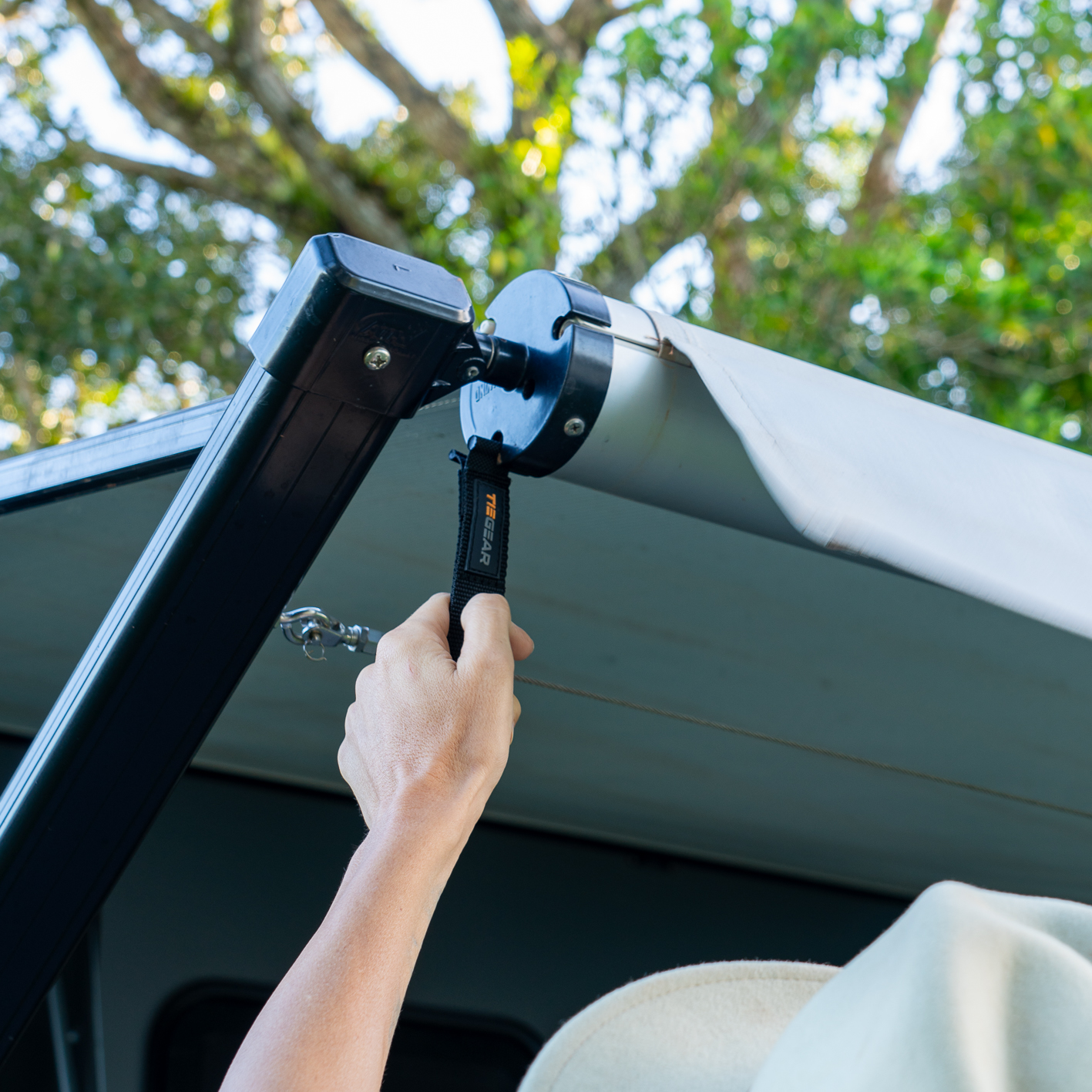 At the other end of the Sail Track Loop is a heavy-duty mesh loop that can be used to clip on our Guy Rope or any other item you want to connect to your awning.